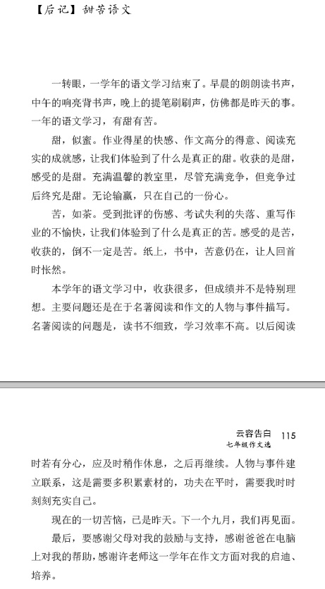 這些作文是老師讓暑假再次整理的,是在七年級時,平時寫的一些作文,每篇作文從第一次成文后,都經(jīng)過了幾次改稿,整理成電子版本后,還多次修改,印象中,不下五次,感覺這一年中一直在改改改。
