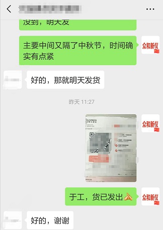 我趕緊把配件拿到車間,檢查配件符合要求,因?yàn)橐筇厥夂统R?guī)的不一樣,再和他們一起最后包裝、裝箱,終于在中午吃飯前完成并聯(lián)系快遞發(fā)掉貨,發(fā)運(yùn)單拍給了客戶通知發(fā)出,徐總和于工對我說感謝配合。